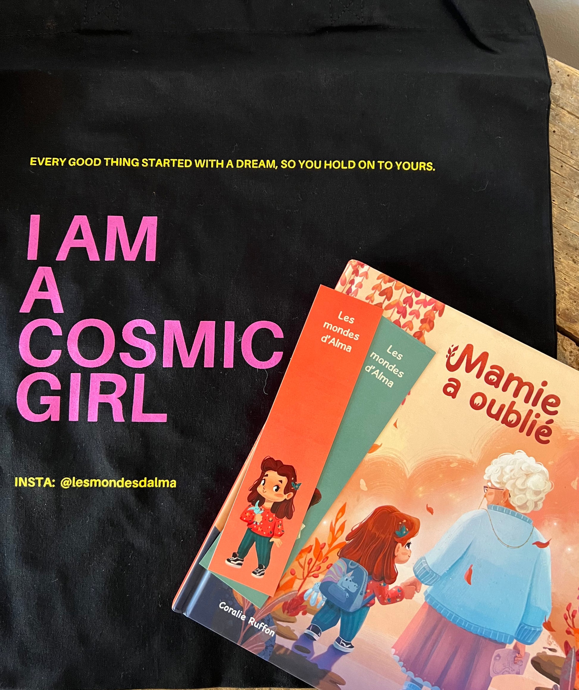 – Un totebag Cosmic Girls, léger et inspirant, pour emporter partout un peu des Mondes d’Alma